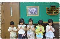キリスト教主義の幼稚園です。 ひとりひとりの子どもが神さまから愛され、良き賜物を 与えられている存在であると考えています。 日々のお祈りや礼拝を通して神さまからいつも愛され、 守られていることを知ることができるよう願っています。 そして、その神さまの愛の中で自分や友だちを受け入れ、 それぞれが自分らしい歩みをすることが出来るように援助します。